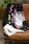 Deze heerlijke fleece deken is gemaakt van 100% polyester. De bedrukte kant is superzacht en glad en de achterkant heeft een schapenvacht textuur (sherpa). Speciaal ontwikkeld voor MaPlusBelle.